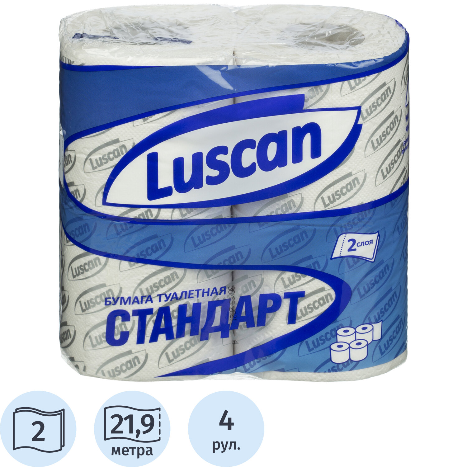 Бумага туалетная Luscan Standart 2-слойная белая (4 рулона в уп) 317381