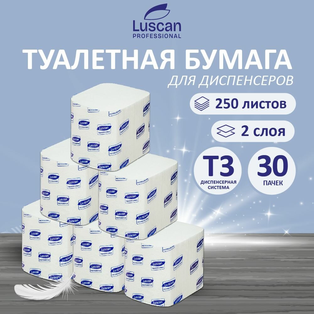 Туалетная бумага Luscan Professional, для диспенсера, листовая, 2 слоя, 30 упаковок по 250 листов