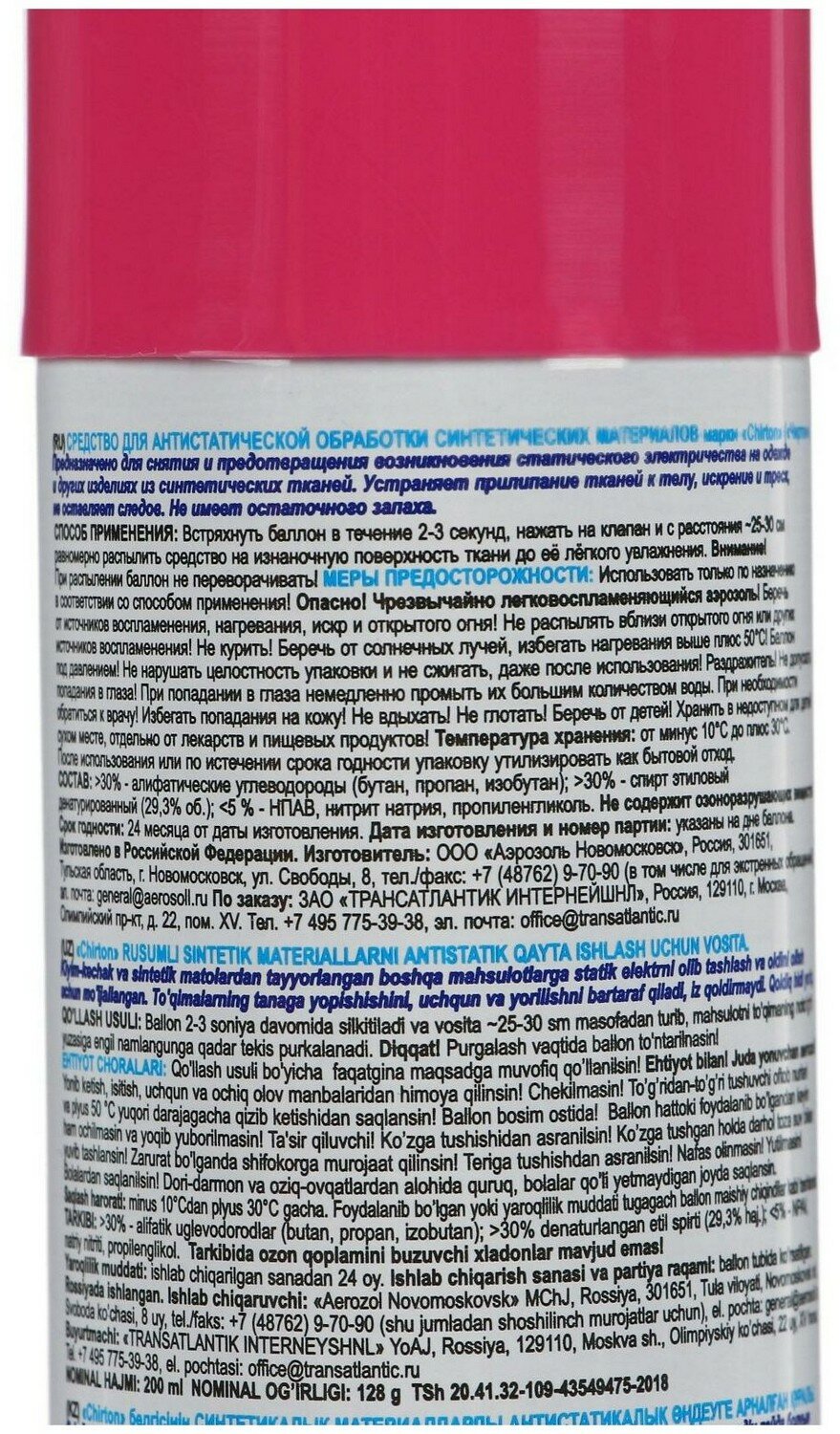 СохранитьChirton Антистатик для одежды, 200 мл, 200 г - 2 шт интересное:
