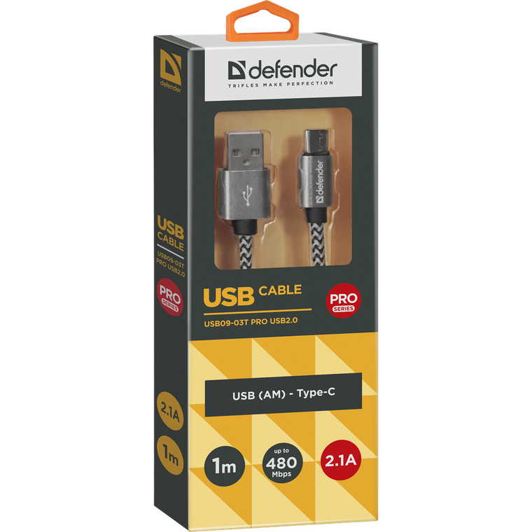 Аксессуар Defender USB09-03T Pro USB2.0 AM - Type-C 1.0m 2.1A Black 87814