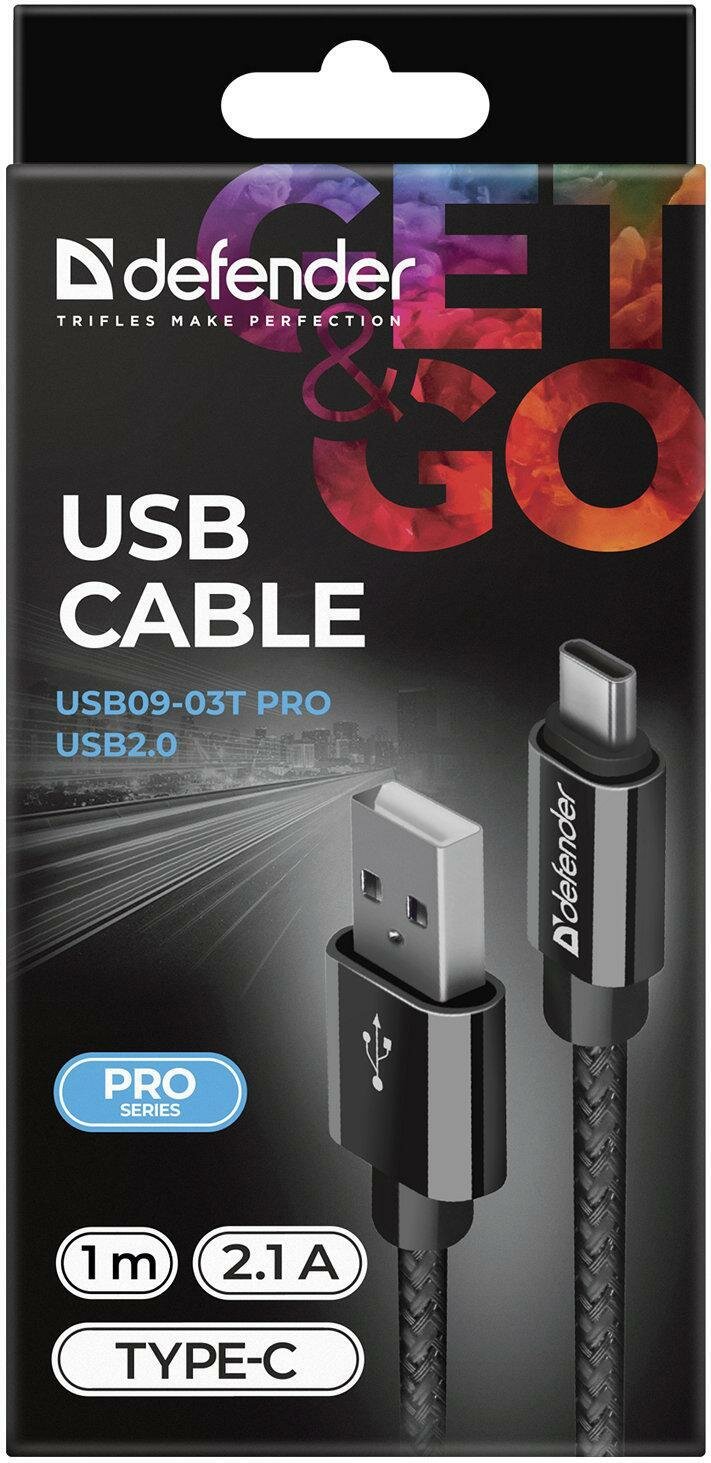Аксессуар Defender USB09-03T Pro USB2.0 AM - Type-C 1.0m 2.1A Black 87814