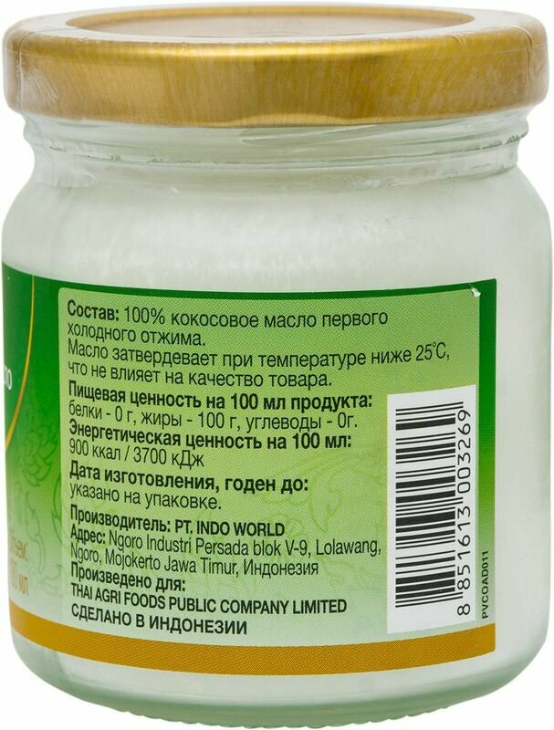 Масло кокосовое Aroy-D 100% extra virgin, 0.18 л