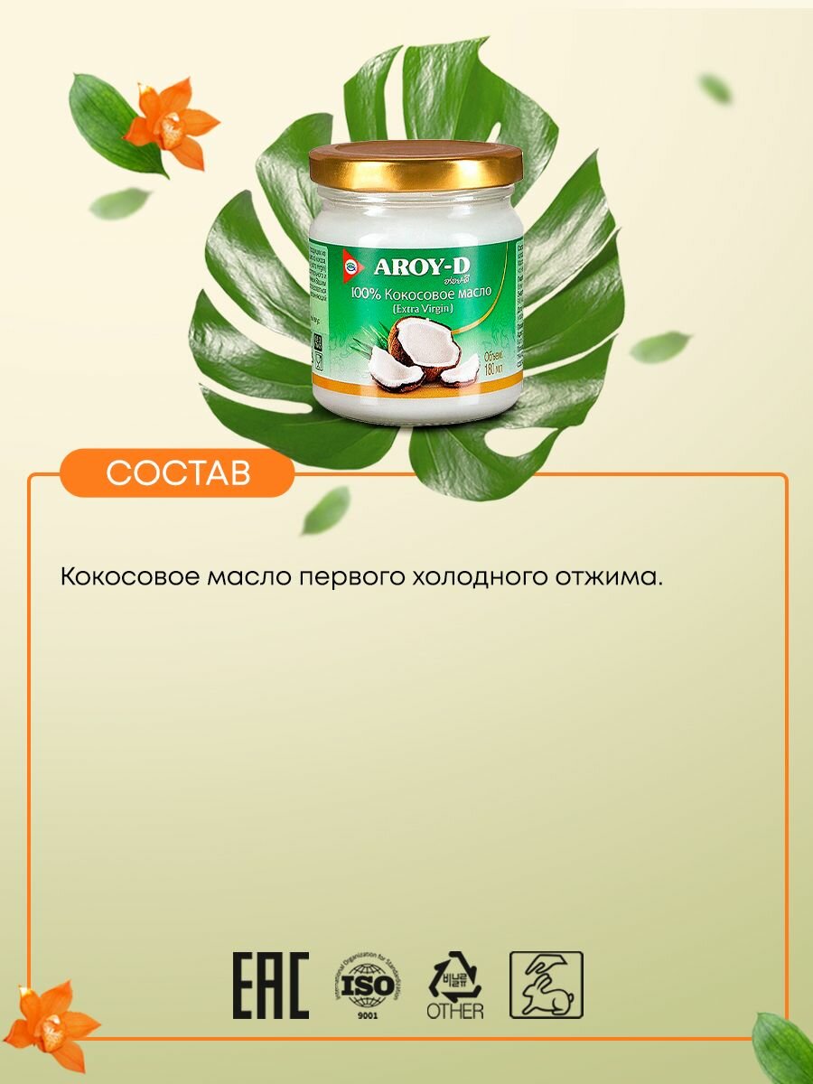Кокосовое масло холодного отжима (coconut oil) Aroy-D | Арой-Ди 180 мл