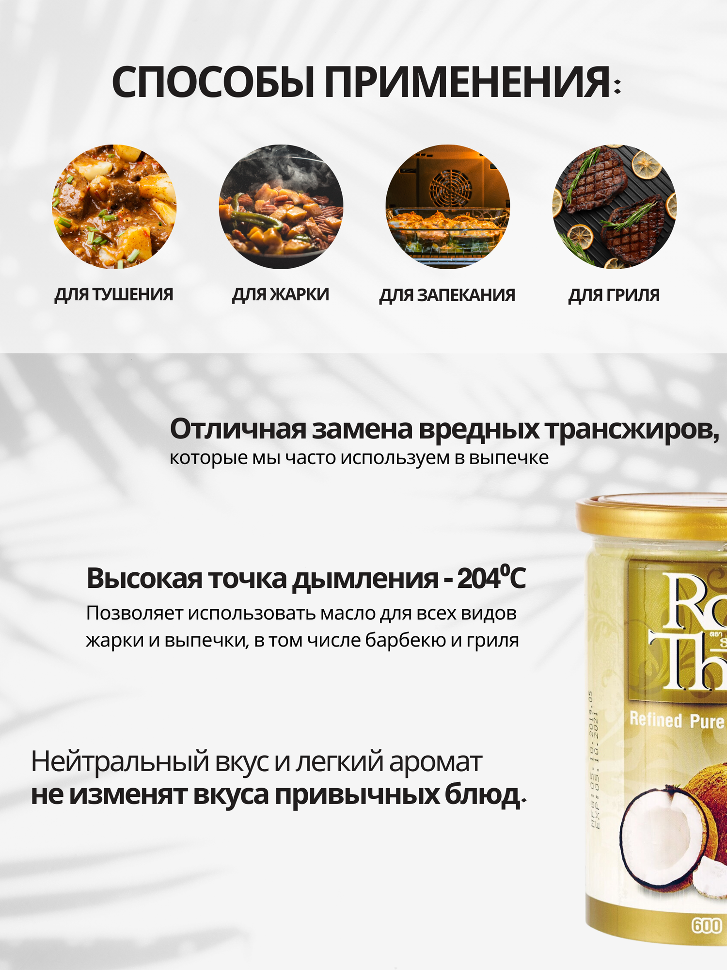 Кокосовое масло 100% рафинированное Roi Thai, 600 мл