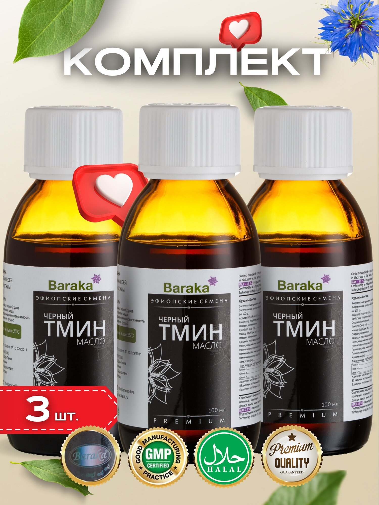 Масло черного тмина Baraka нерафинированное Эфиопские семена, стеклянная бутылка, 0.1 кг, 0.1 л