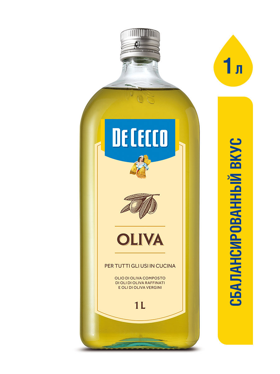 Оливковое масло De Cecco, OLIVA, рафинированное с добавлением нерафинированного, ст/б, 1 л