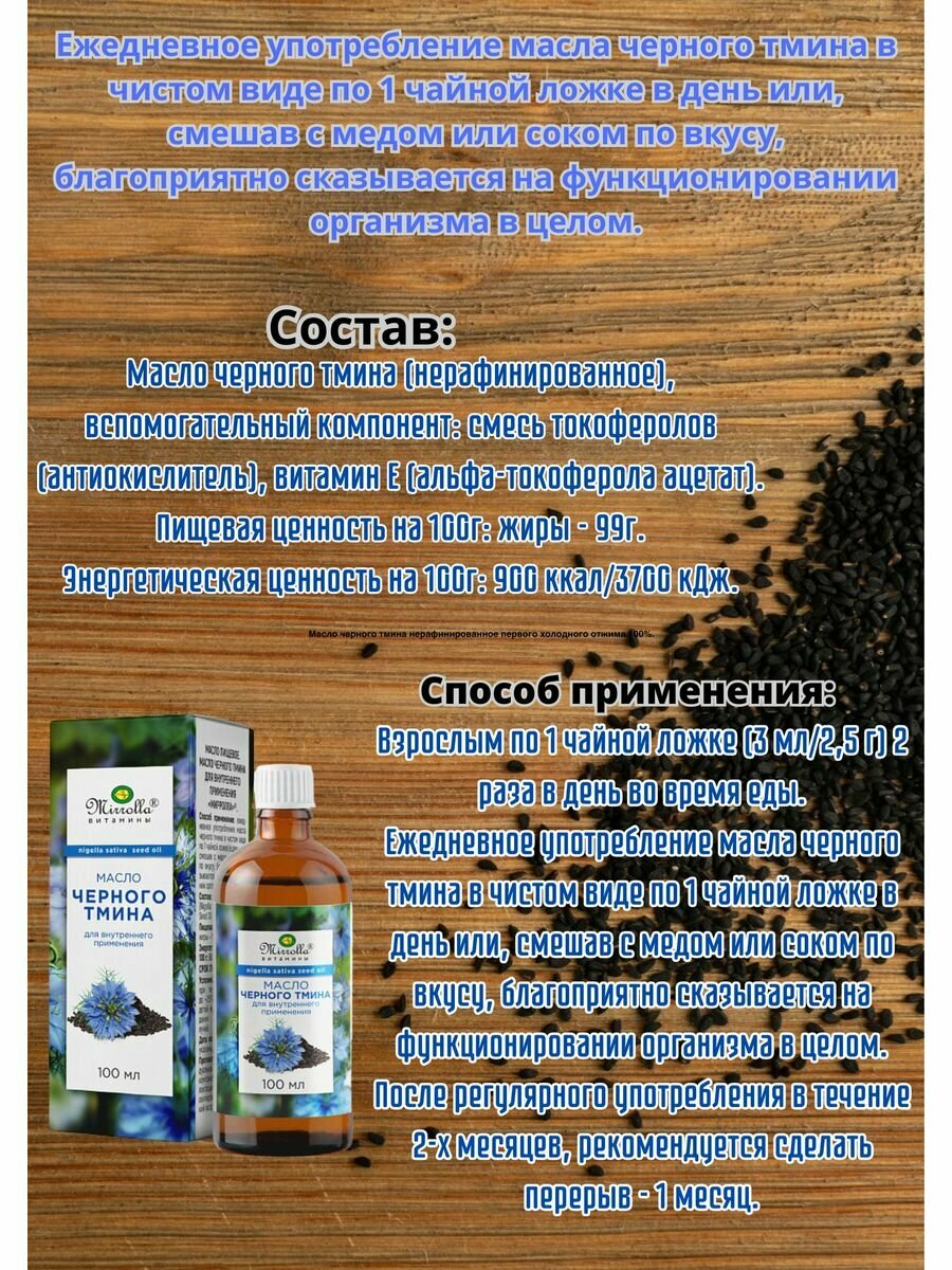 Mirrolla Масло чёрного тмина "Мирролла", для внутреннего применения, 100 мл
