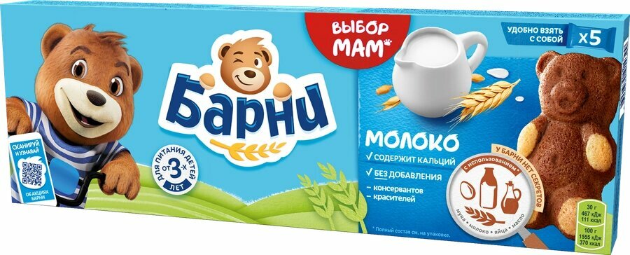 Пирожное бисквитное медвежонок барни с молочной начинкой, 5х30г интересное:
