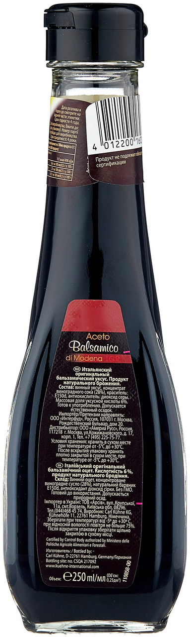 Уксус Kuhne Condimento Balsamico Bianco Итальянский Оригинальный бальзамический 5% 250 мл интересное: