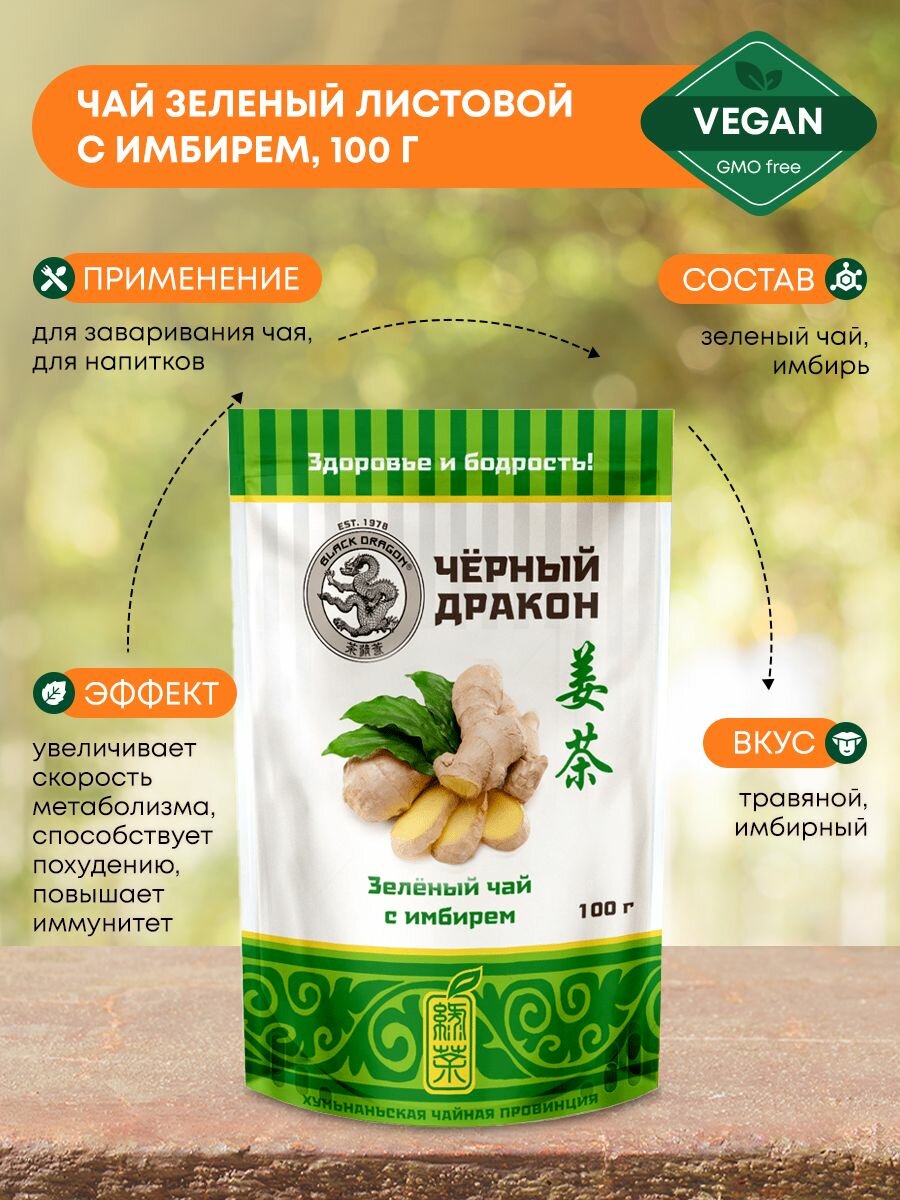 Чай зеленый Черный дракон с имбирем 100 грамм интересное: