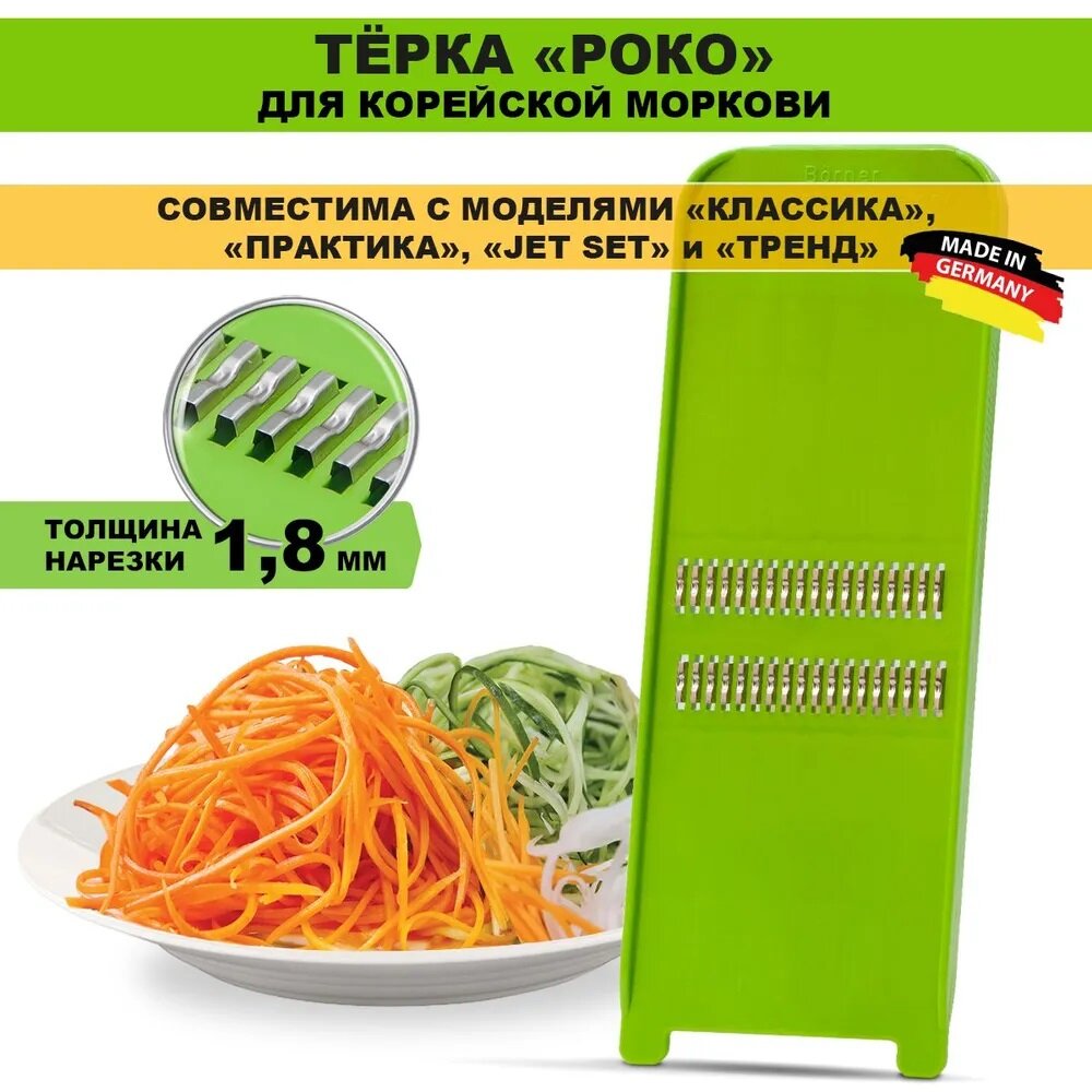 СохранитьРоко-терка Borner Classic (Германия) для корейской моркови, цвет: зеленый интересное:
