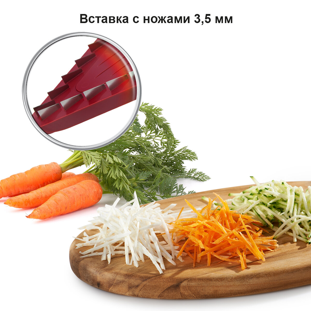 | Плюсы: | Много насадок. Режет как надо. Острая. Удобный контейнер для резки |
