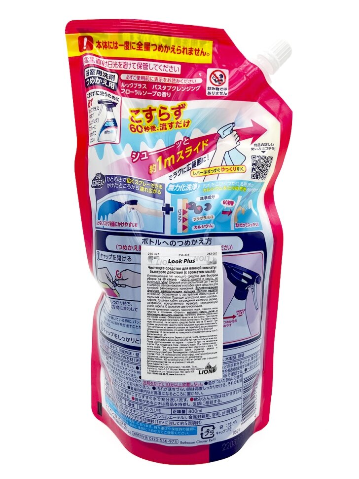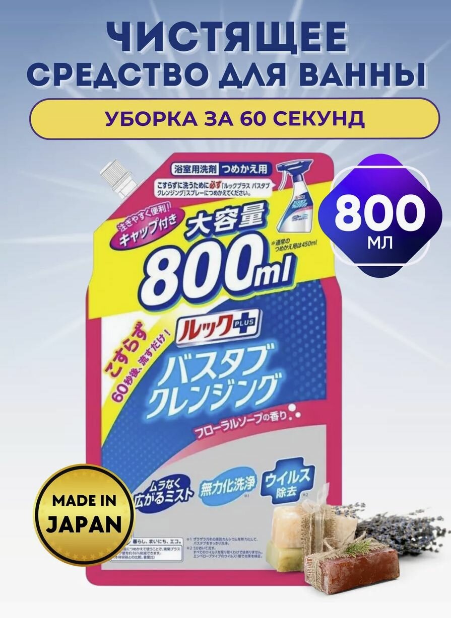 Купить Средство для ванной комнаты быстрого действия LION Look Plus, с ароматом цветочного мыла, мягкая сменная упаковка 800мл