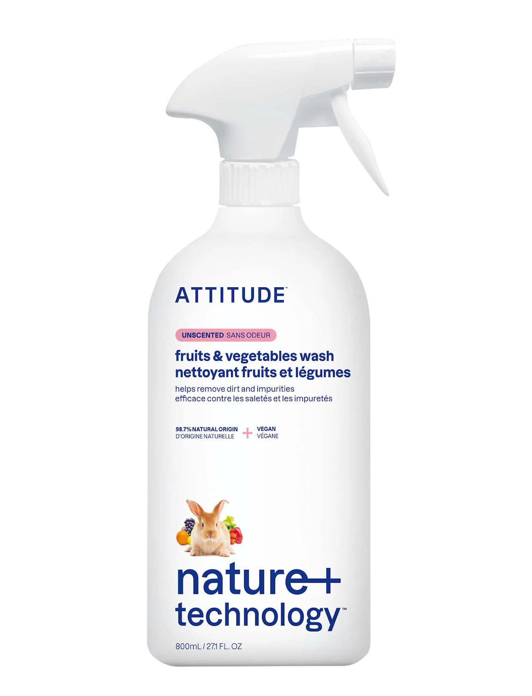 Cредство Attitude для мытья фруктов и овощей, спрей, гипоаллергенный, без запаха, 800 мл