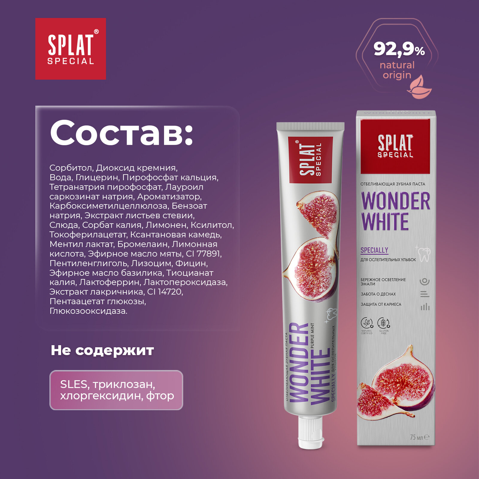 СохранитьОтбеливающая зубная паста для комплексного ухода SPLAT Special WONDER WHITE 75 мл. интересное: