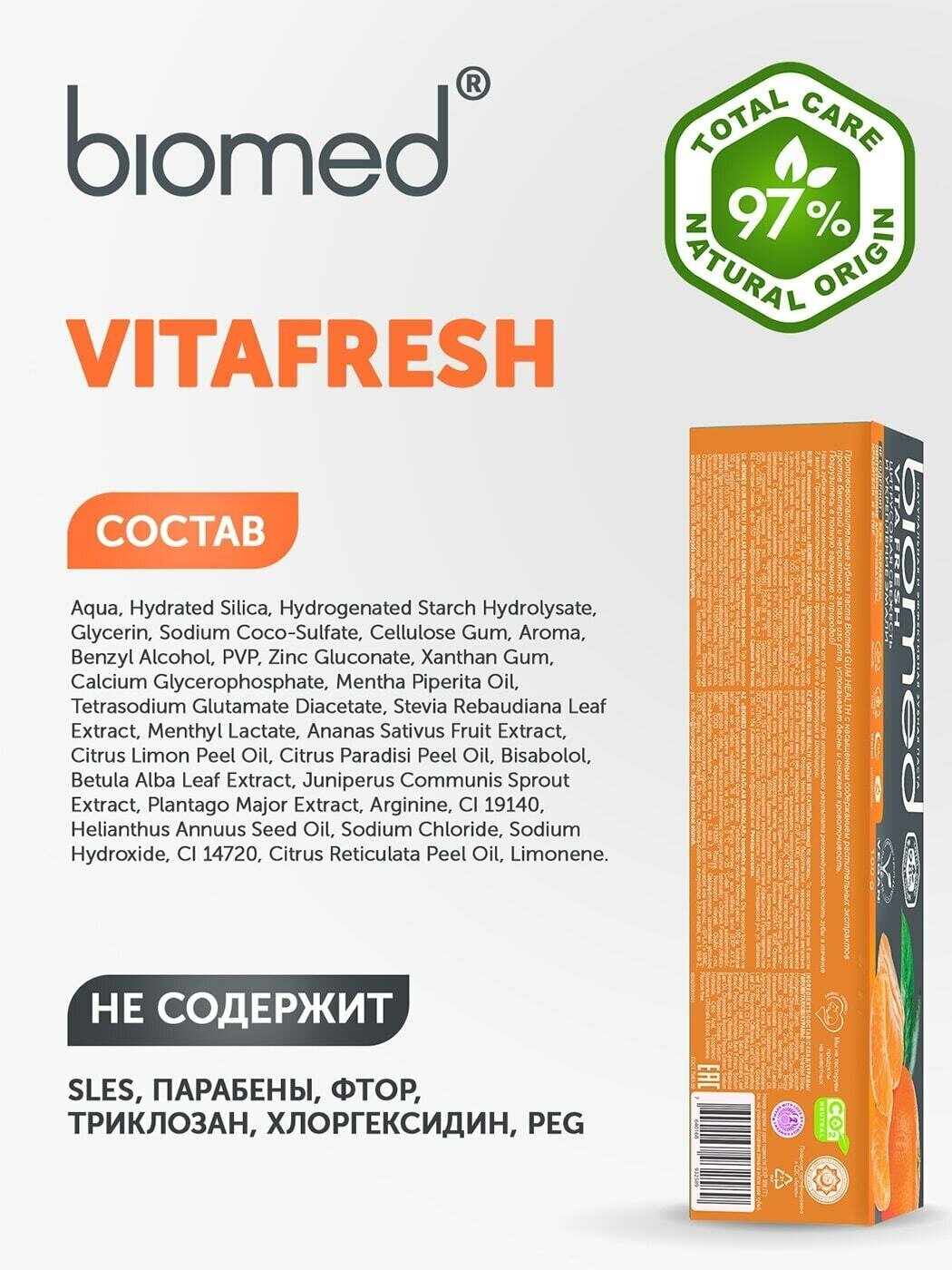 Biomed VITAFRESH Зубная паста Цитрусовая свежесть и забота о деснах, 100г