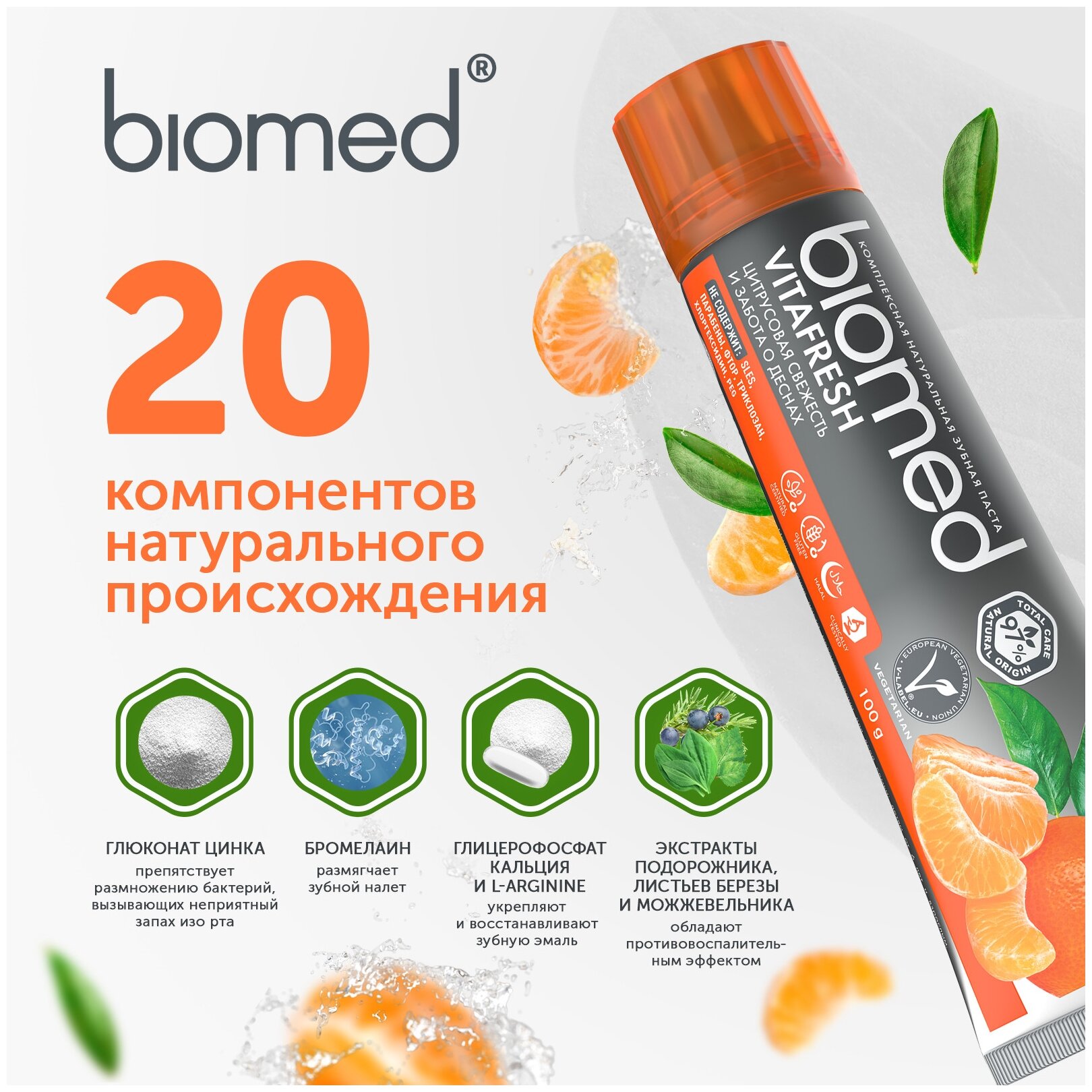 Антибактериальная зубная паста для свежести дыхания и укрепления эмали BIOMED VITAFRESH Цитрус, 100 г