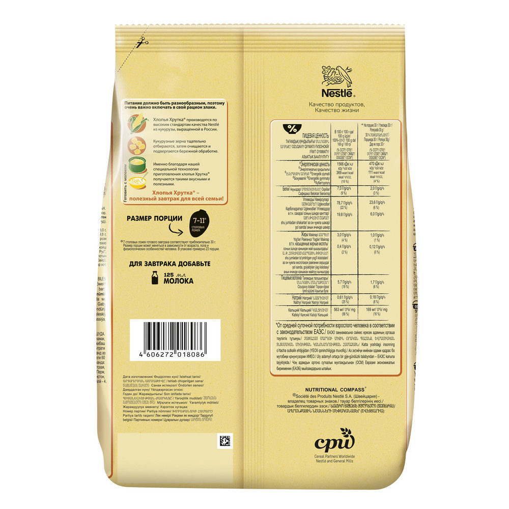 Хлопья кукурузные NESTLE Хрутка, хрустящие обогащенные кальцием, 700г