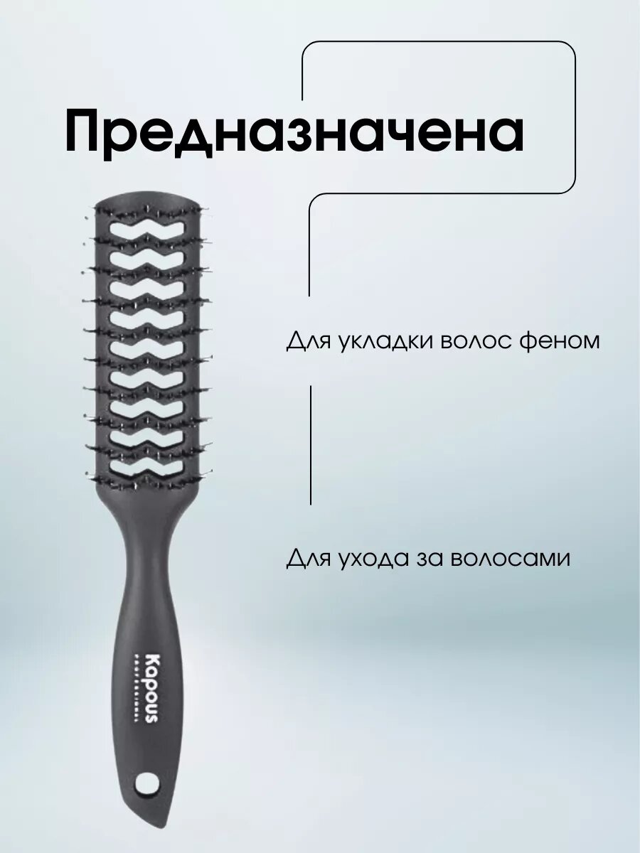 Kapous Professional / Широкая щетка для волос "Тоннельная" 2-сторонняя, с покрытием Soft Touch
