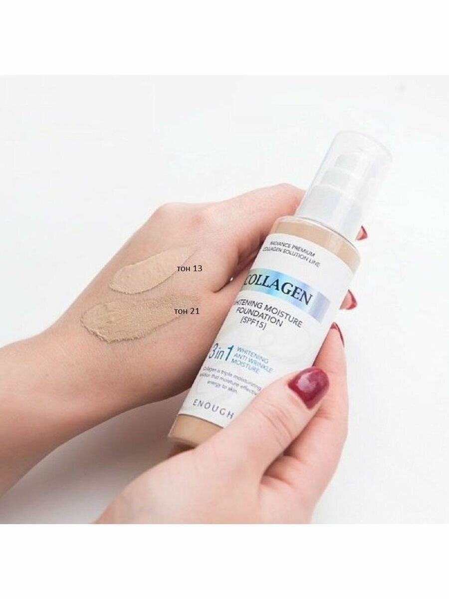 Original Тональный крем 3 в 1 ENOUGH Collagen Whitening Moisture Foundation, SPF 15, тон 21, Корея