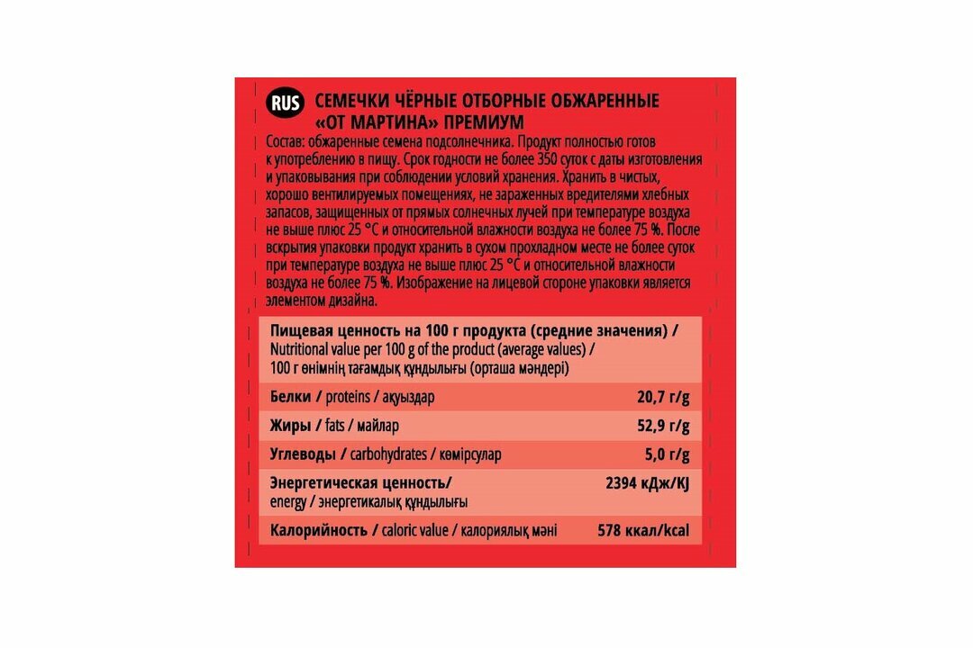 Семечки обжаренные "От Мартина" премиум отборные (красные), 500 г