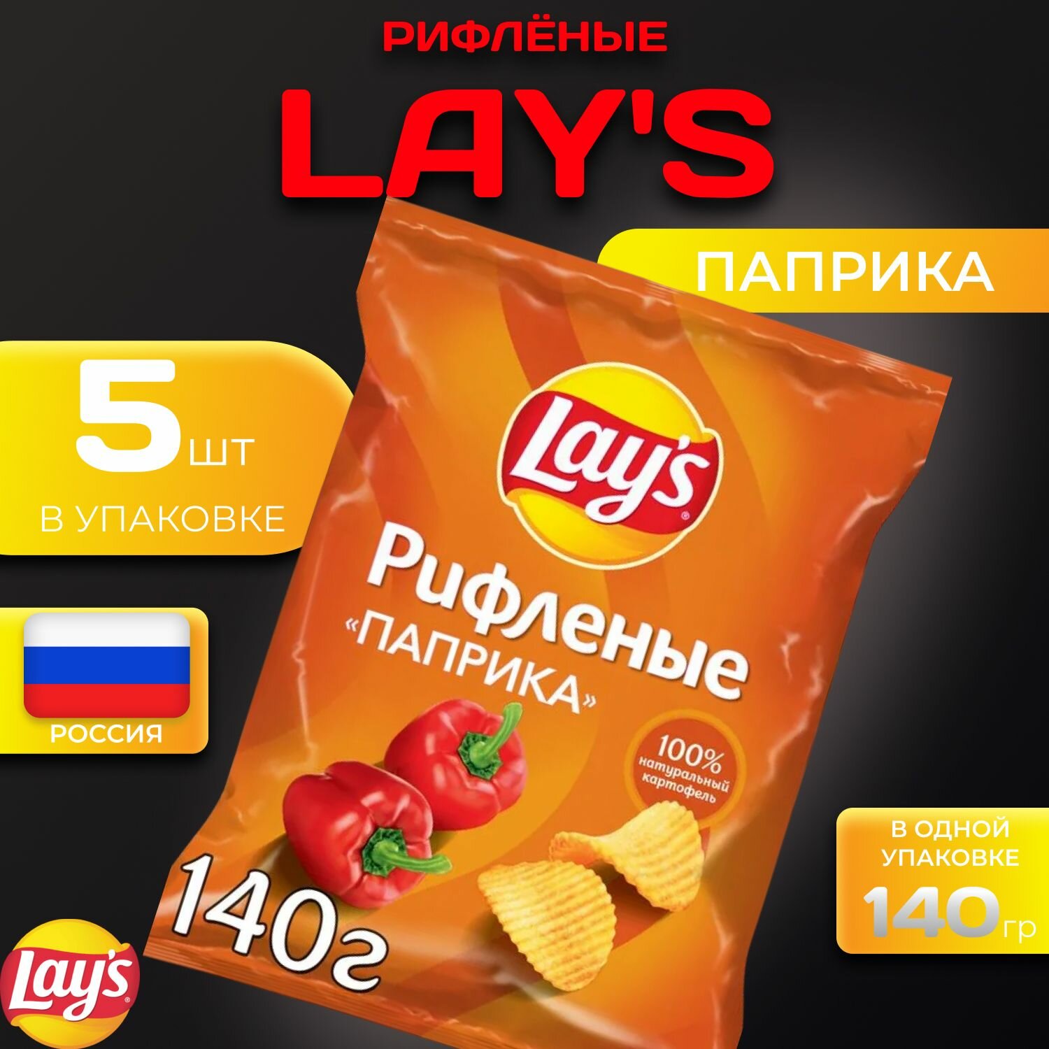 СохранитьКартофельные чипсы Lays рифленые "Паприка" 140 гр. 5 шт. Лейс интересное: