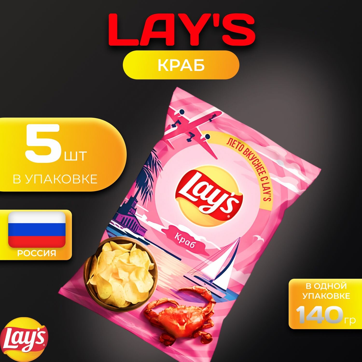 Купить Картофельные чипсы Lays "Краб" 140 гр. 5 шт. Лейс