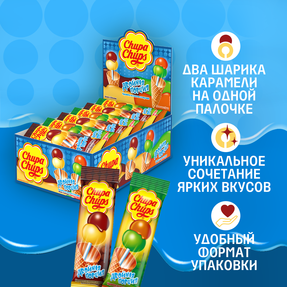 Карамель Сhupa-Сhups «Двойная порция», ассорти, 16.8 г(24 шт.)