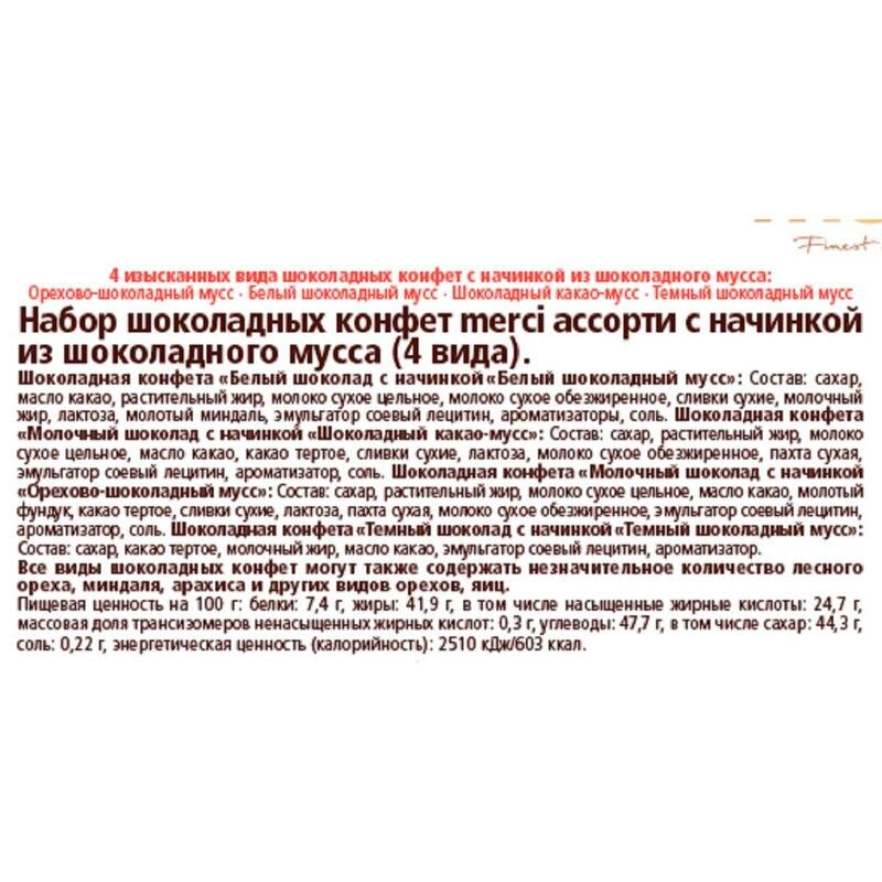 СохранитьКонфеты MERCI Finest selection Ассорти с начинкой из шоколадного мусса, 210г интересное: