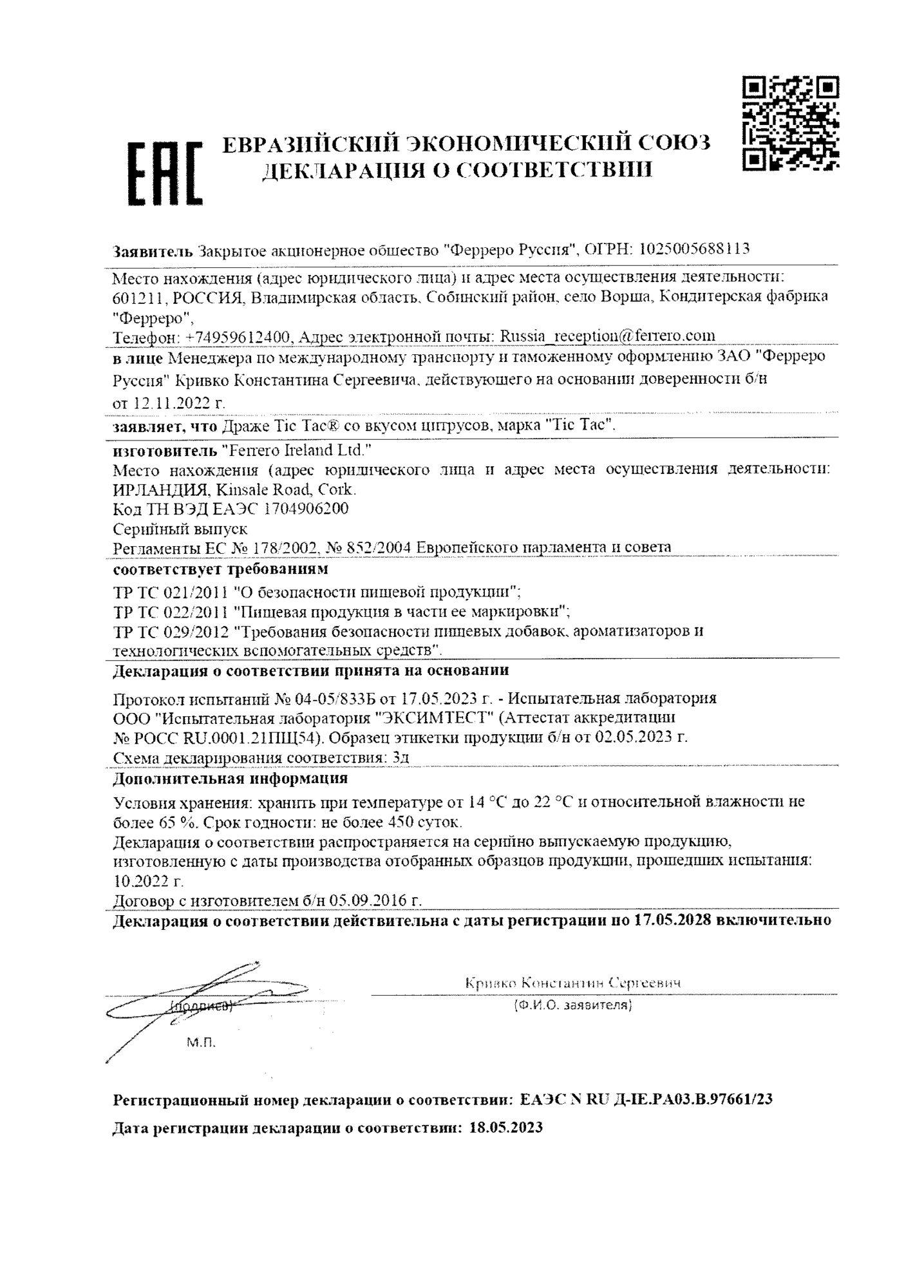 | Производитель | Tic Tac |