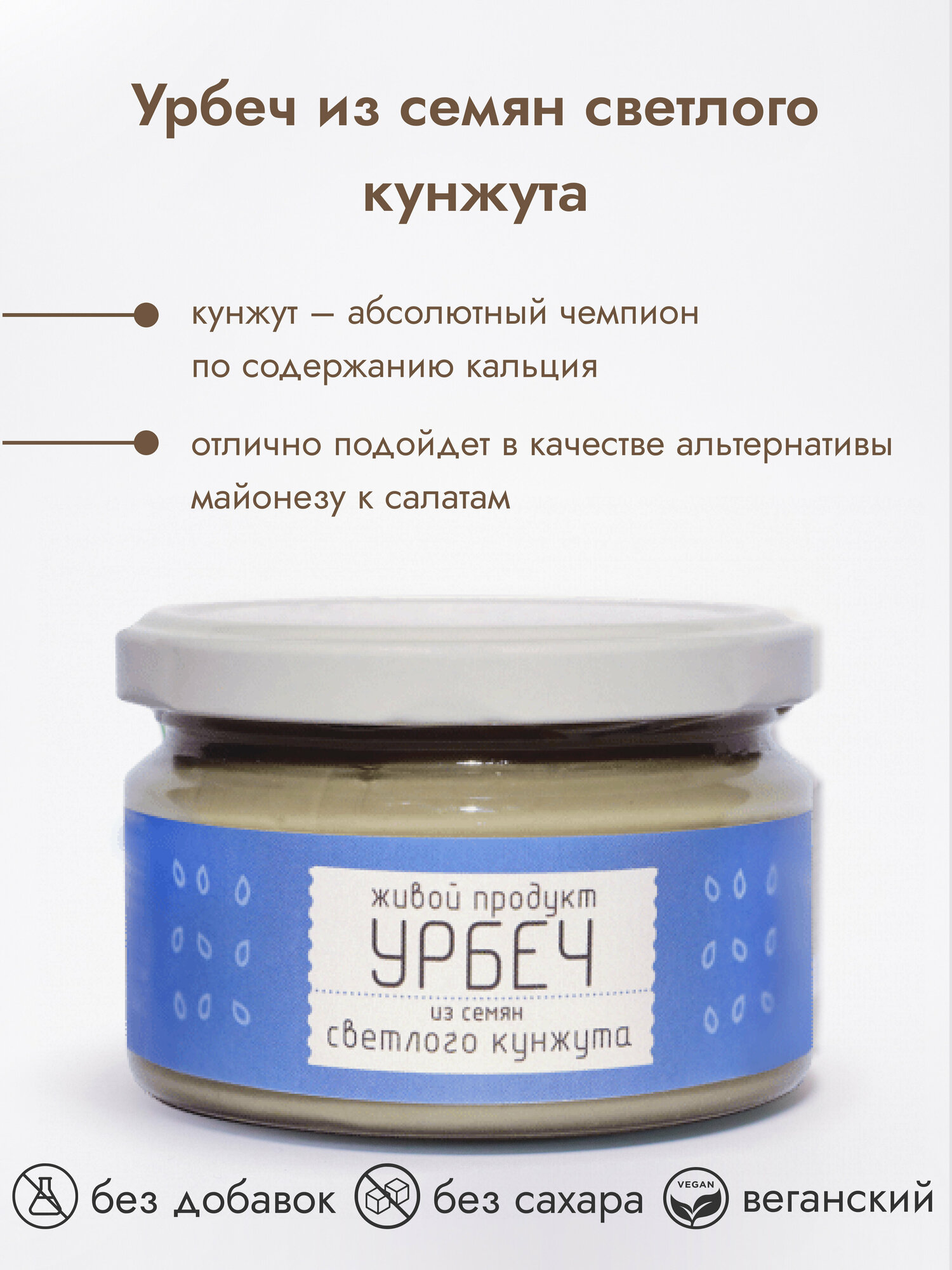 Урбеч Живой Продукт из семян светлого кунжута, 200 г, натуральная паста без добавок и без сахара