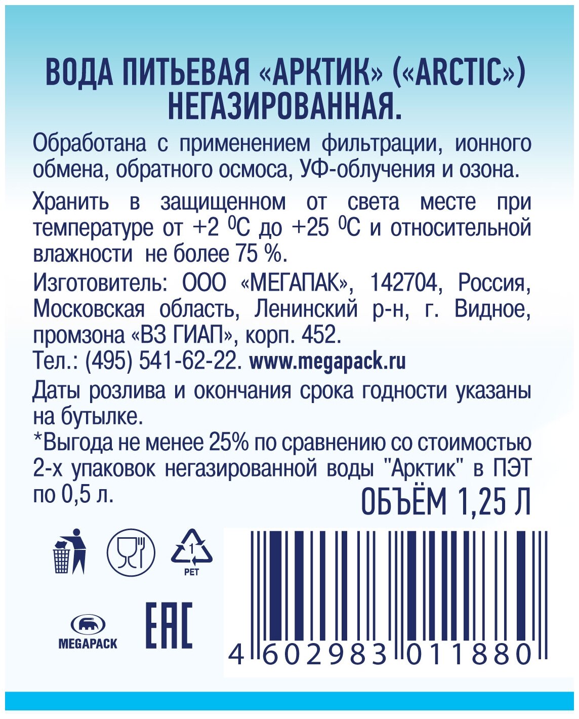 Купить Вода артезианская питьевая Arctic (Арктик) 1,25 л х 6 бутылок, б/г пэт