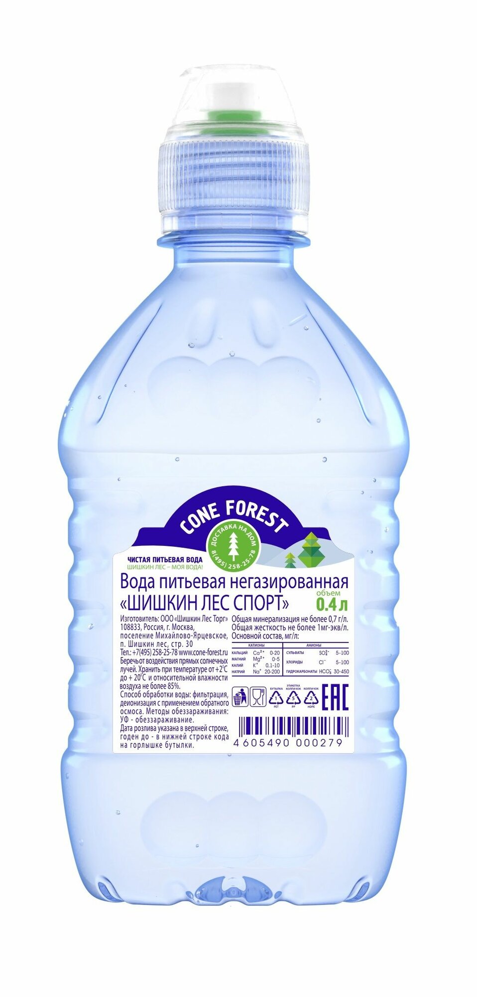 Питьевая вода Шишкин лес Спорт негазированная 0.4 л. ПЭТ упаковка 12 штук