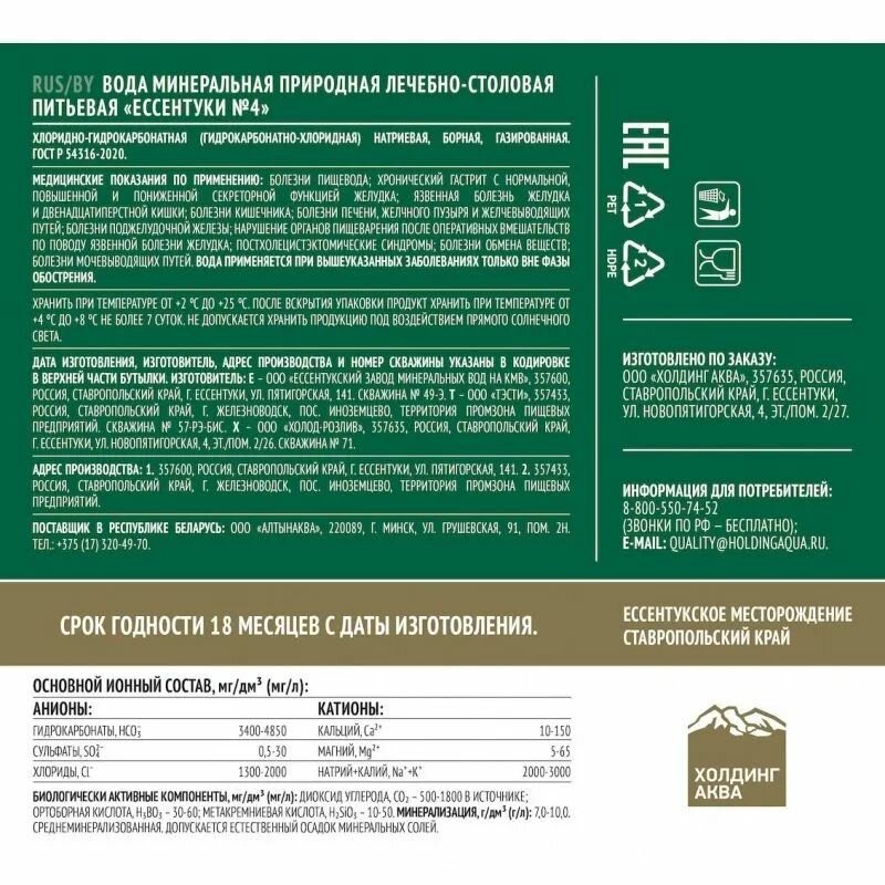 | Тип воды | минеральная |