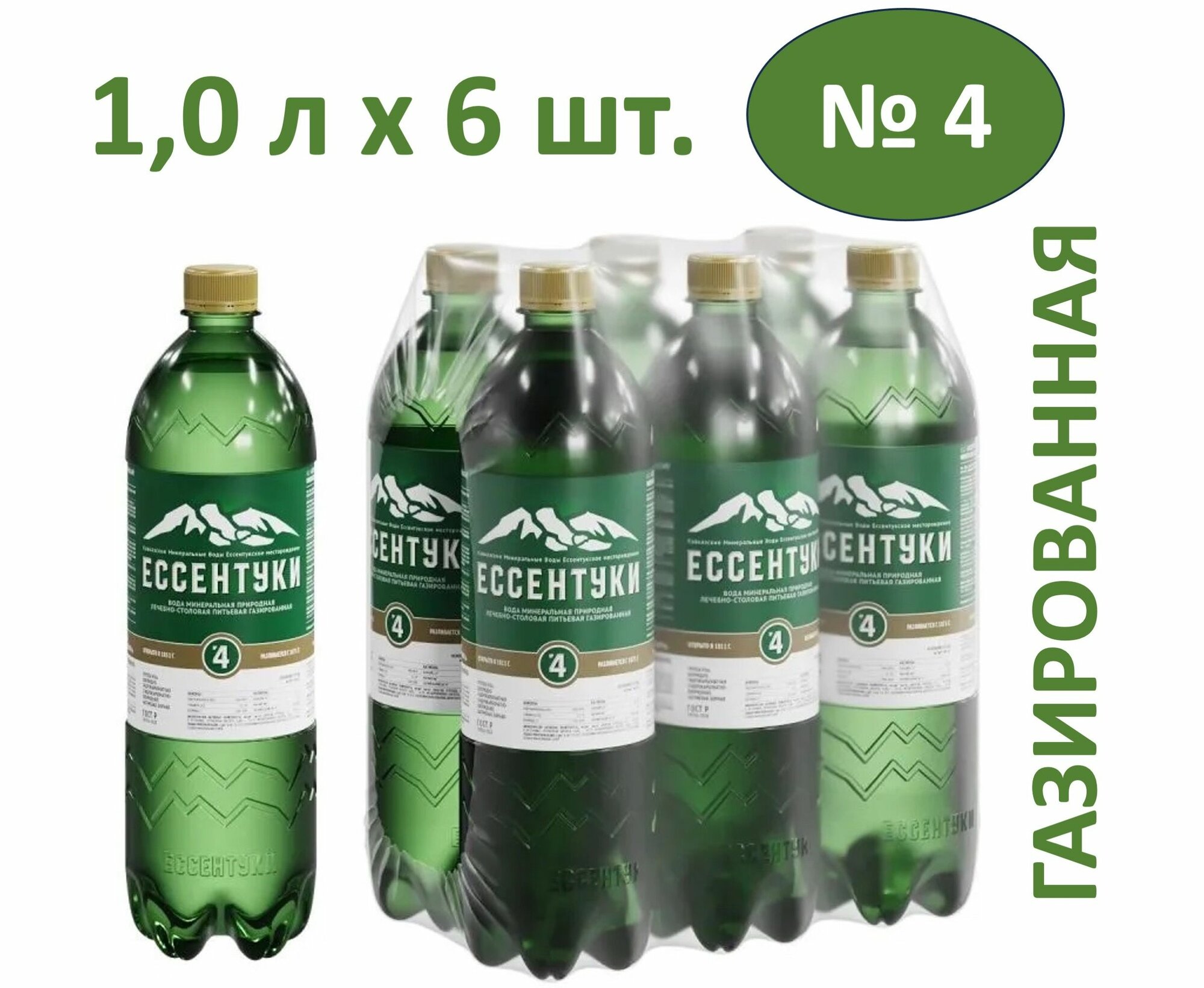 Вода минеральная Ессентуки №17 газированная, ПЭТ, 6 шт. по 1 л