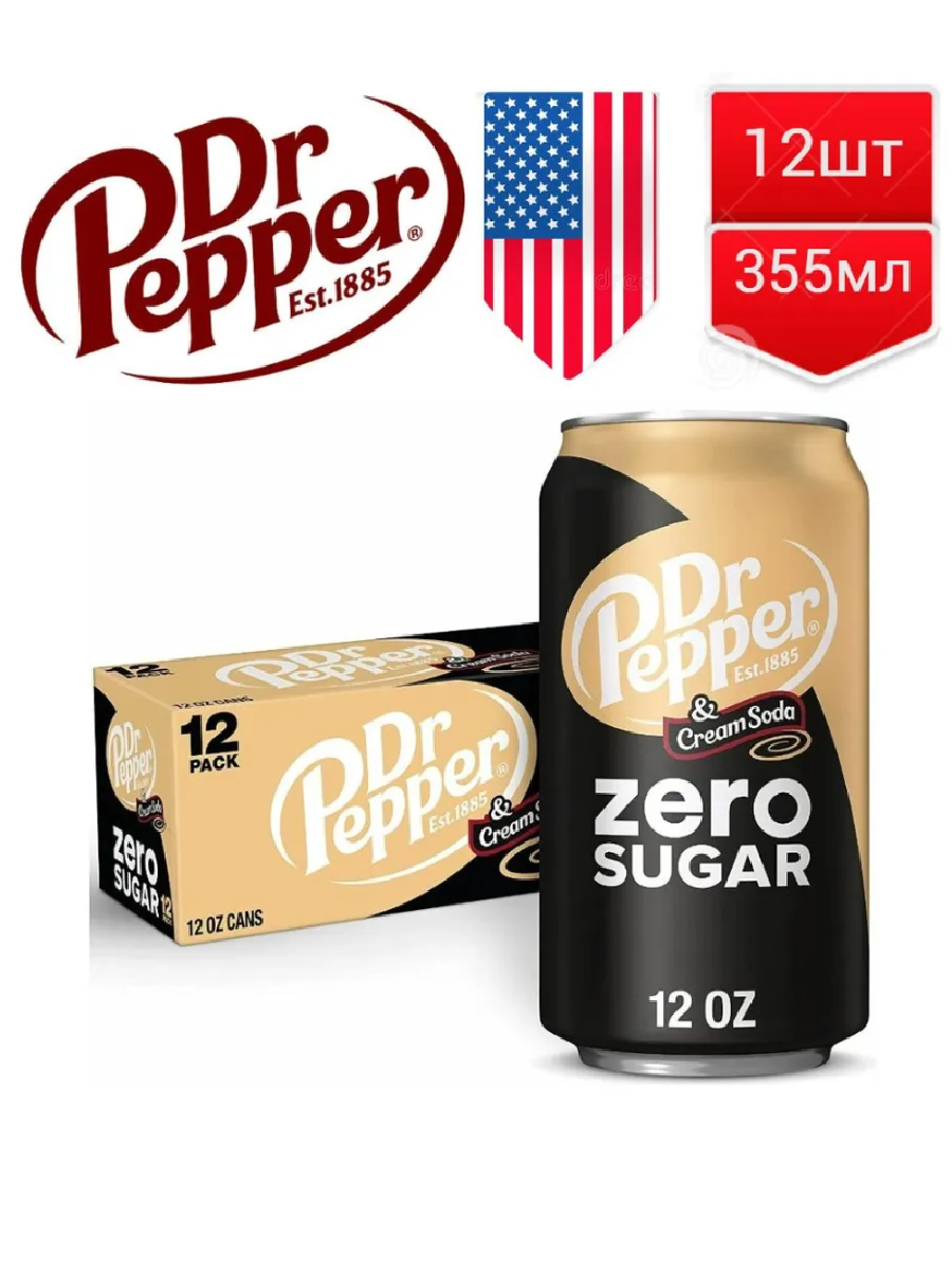 СохранитьГазированный напиток Dr Pepper Cream Soda Zero со вкусом крем-сода (без сахара) (США), 355 мл (12 шт) интересное: