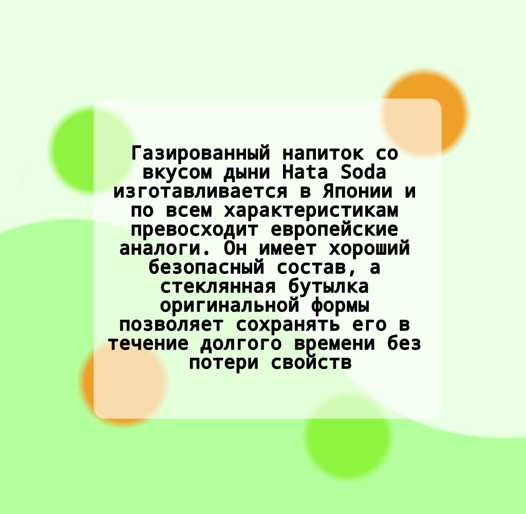 Ниже Вы можете прочитать отзывы на HATA KOSEN Напиток Musk Melon Soda газированный безалкогольный со вкусом Мускатной Дыни, 300 мл., стеклянная бутылка, ознакомится с подробными характеристиками, посмотреть интересные обзоры и фотографии на HATA KOSEN Напиток Musk Melon Soda газированный безалкогольный со вкусом Мускатной Дыни, 300 мл., стеклянная бутылка.