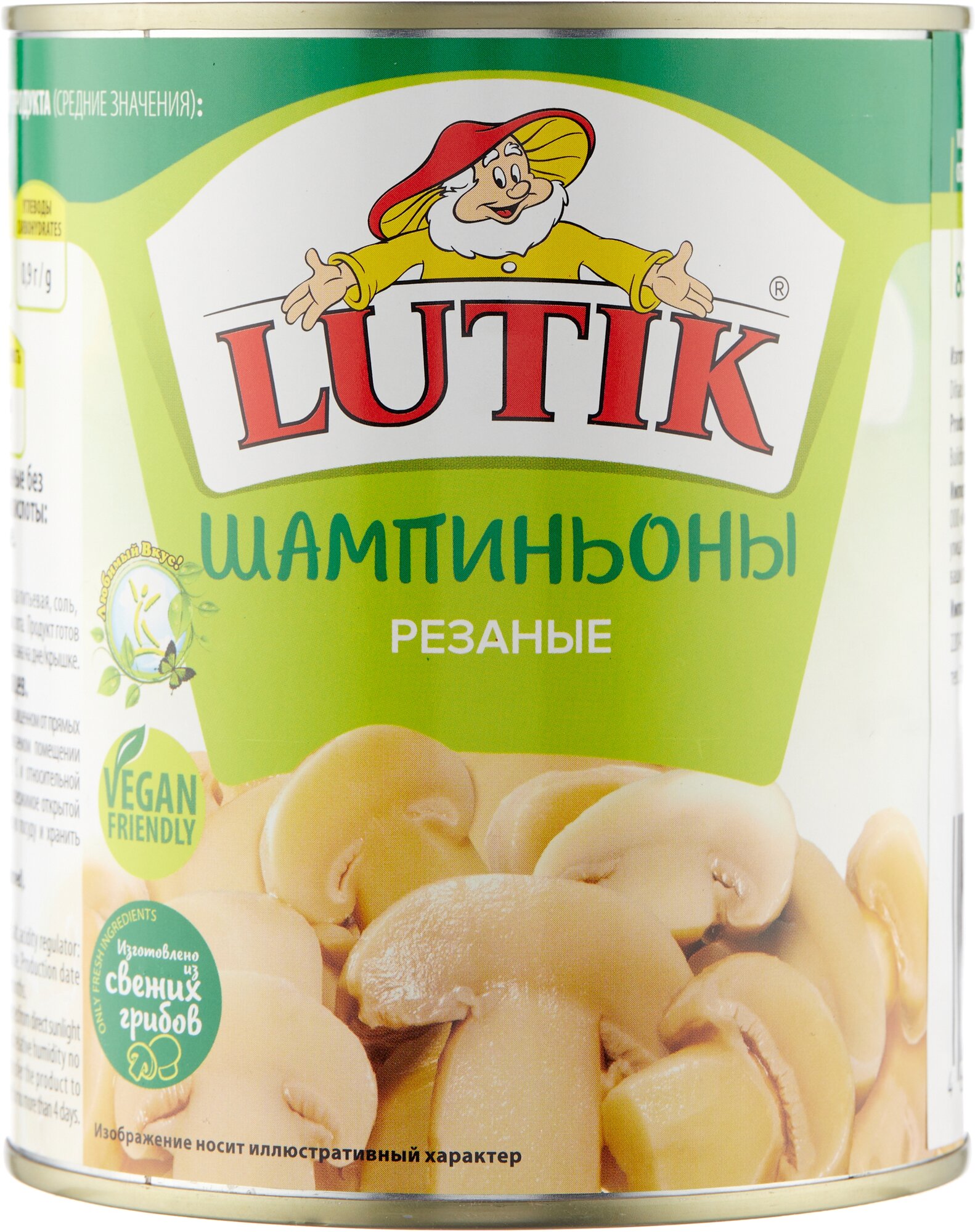Шампиньоны резаные LUTIK консервированные без добавления уксусной кислоты, 850 мл