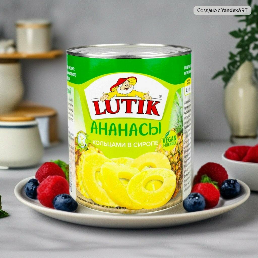 Консервированные ананасы Lutik кольцами в сиропе, жестяная банка, 560 г, 580 мл, 1 шт.