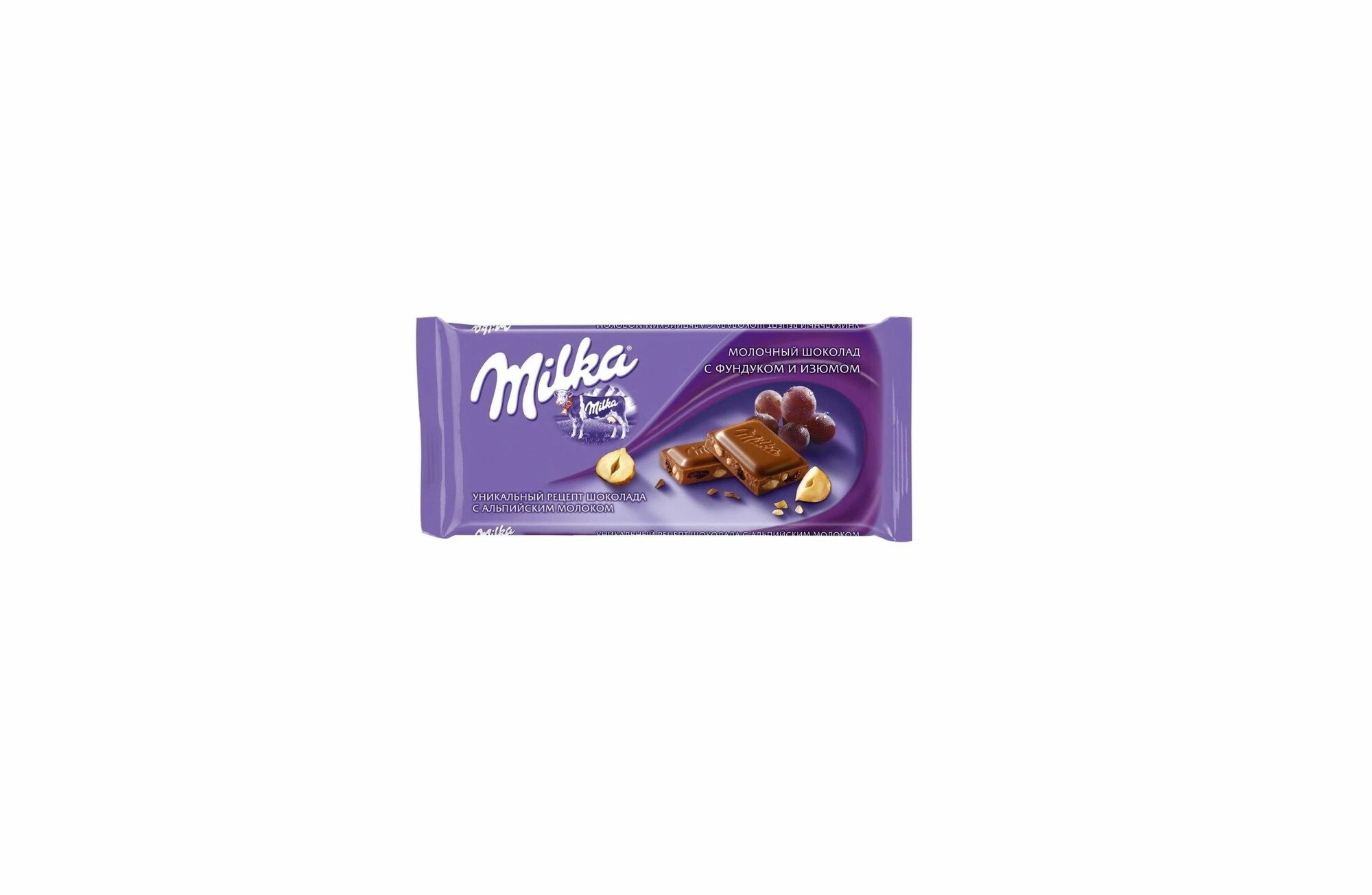 Милка Шоколадная плитка 100гр Изюм с фундуком (22)