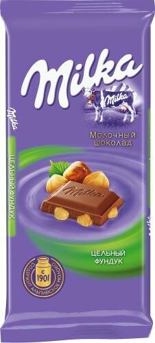 Шоколад MILKA (Милка) молочный, с цельным фундуком, 85 г, 100841