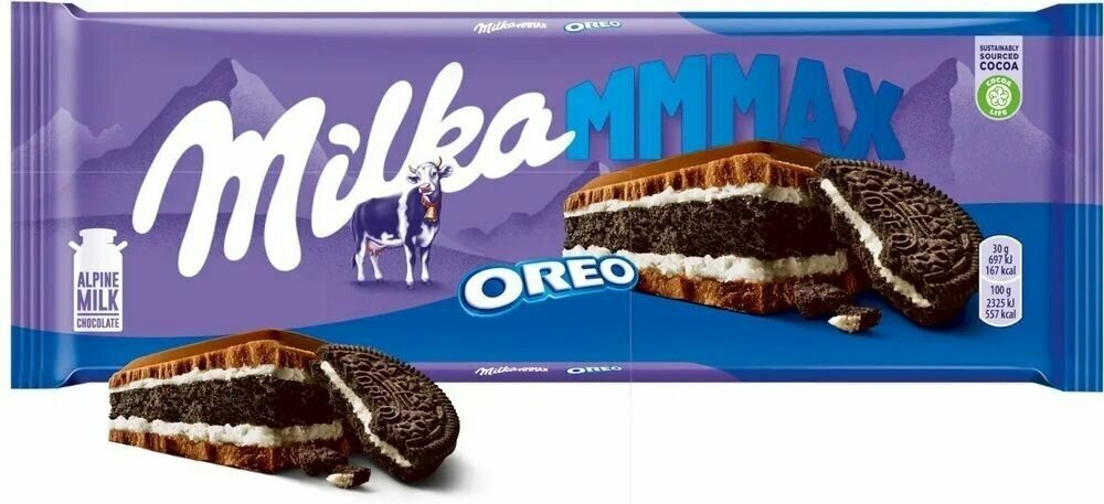 MILKA шоколад молочный с начинкой со вкусом ванили и печеньем OREO 300г