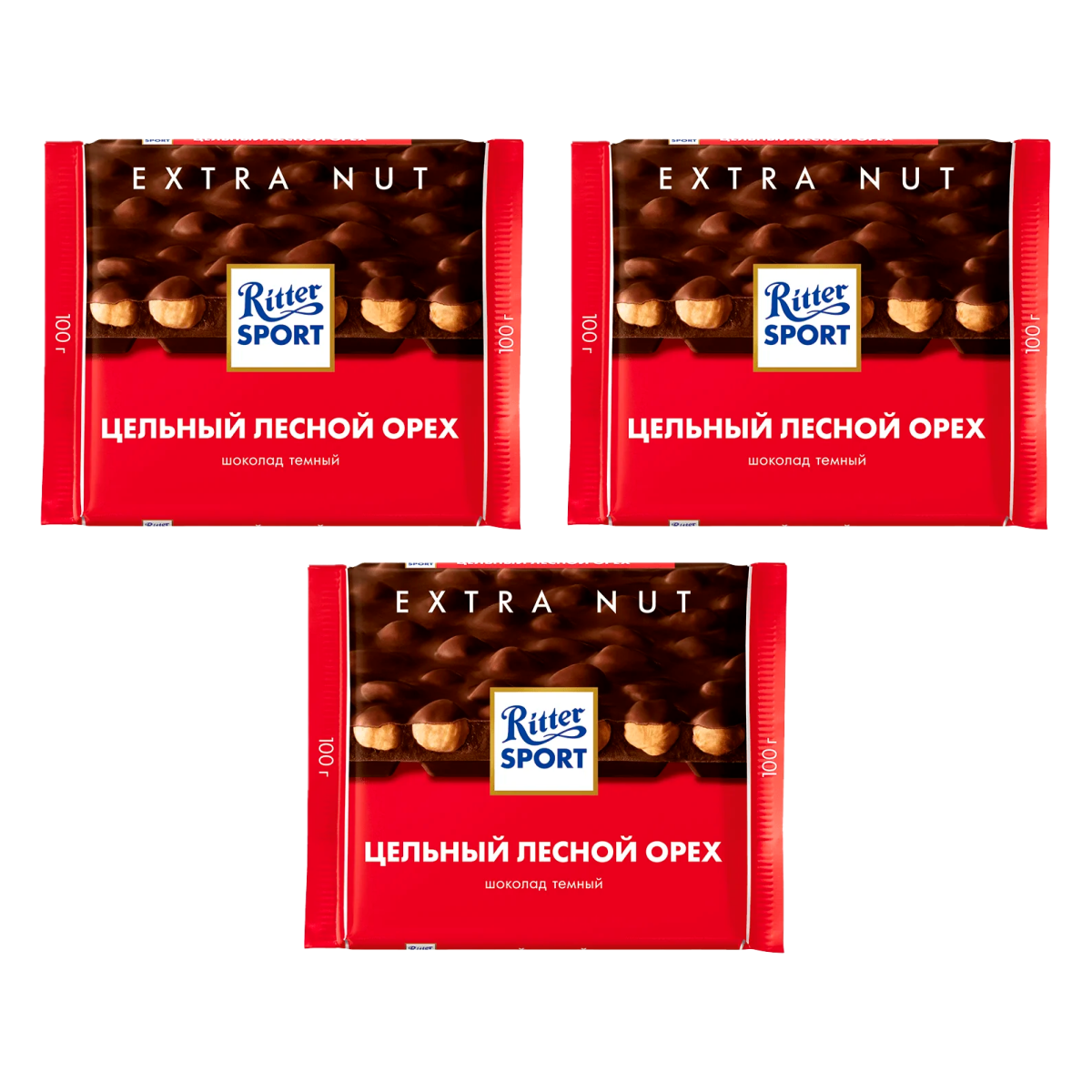 Купить Шоколад темный Ritter Sport с лесным орехом 3 шт по 100 г