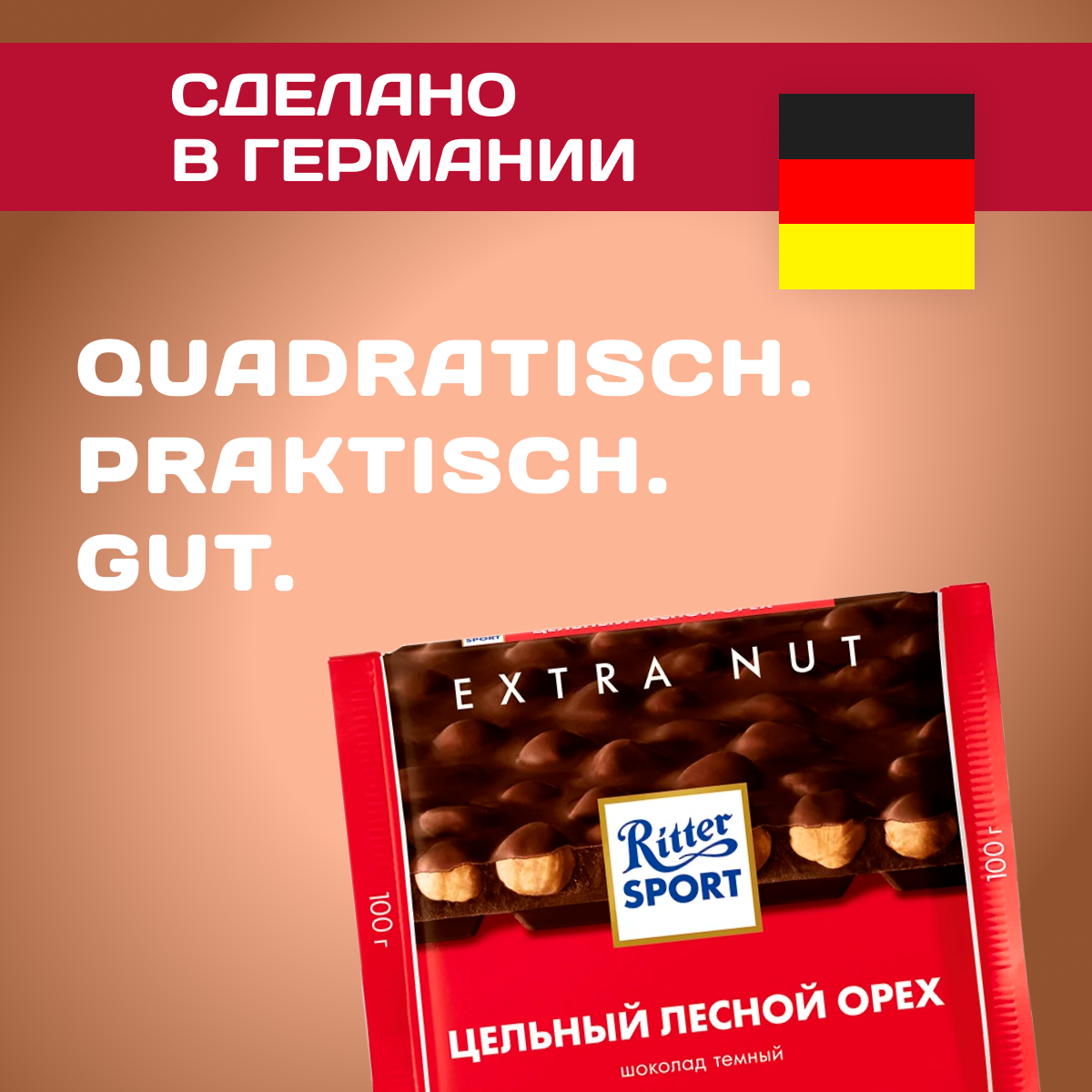Шоколад Ritter Sport Extra Nut темный цельный лесной орех, 100 г, 10 уп.