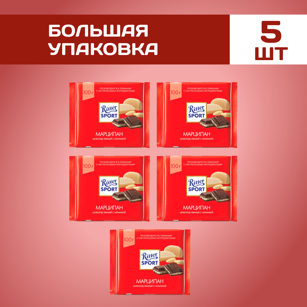 Купить Шоколад горький Ritter Sport с марципаном 5 шт по 100 г