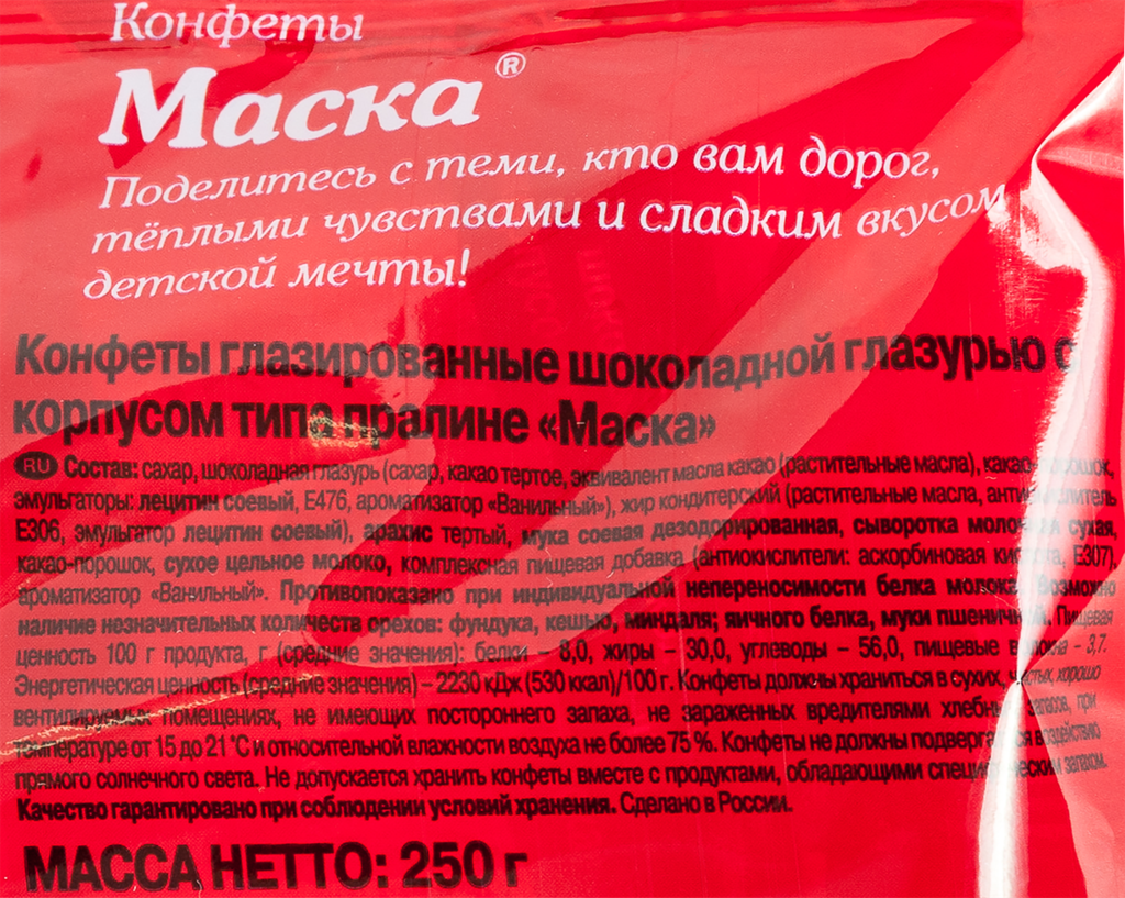 Конфеты Красный октябрь - Маска, 250 г интересное: