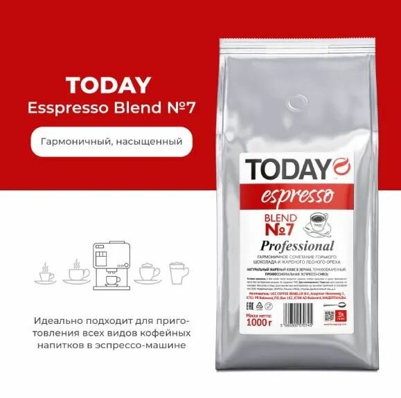 Кофе в зернах TODAY Espresso Blend № 7, 1кг, 1 шт.