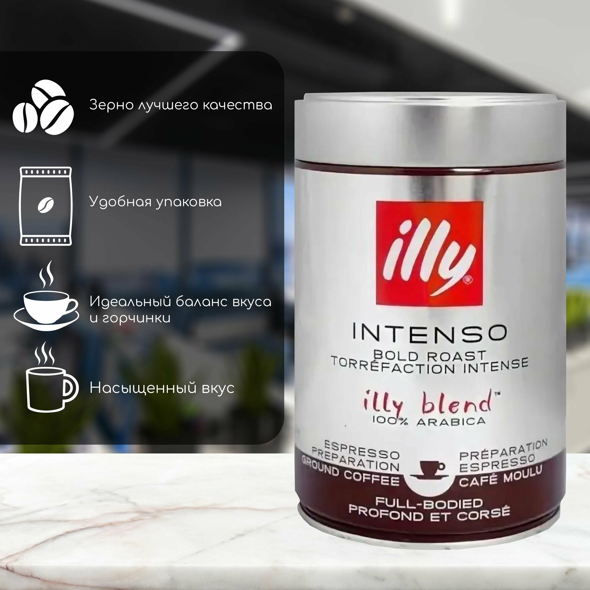 Кофе молотый ILLY "Intenso" 250 г в жестяной банке, арабика 100%, италия, 46