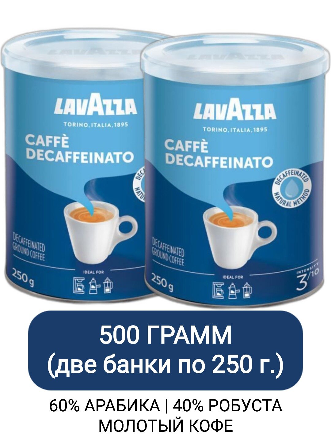 Кофе молотый Lavazza Caffe Decaffeinato, 250гр х 2 шт