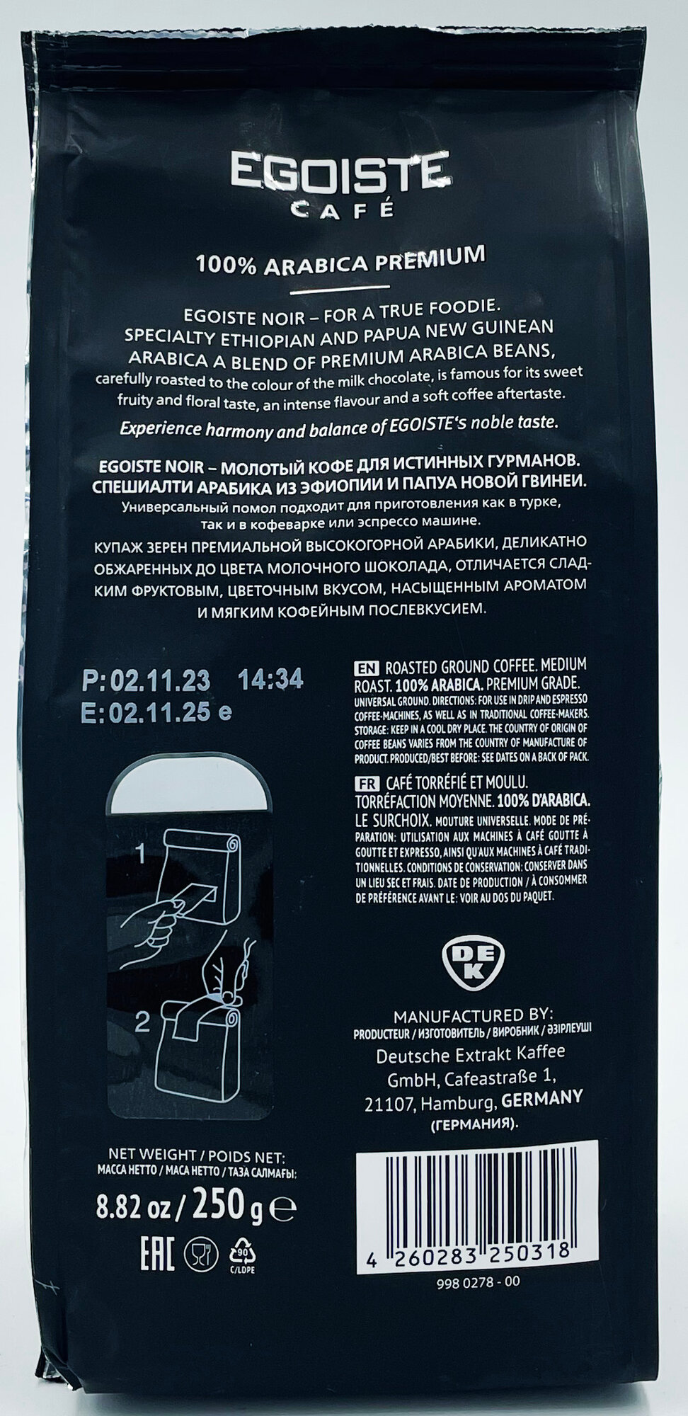 Кофе молотый Egoiste Noir, 250 г, 2 уп.